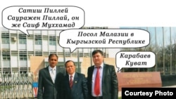 Гражданин Кыргызстана, 33-летний Куват Карабаев в январе 2012 года познакомился с гражданином Малайзии Саифом бин Пилайем. Иностранец сказал, что малайзийский бизнес заинтересован в Кыргызстане, и предложил создать посредническую компанию. Саиф бин Пилай, назвавший себя доверительным представителем посла Малайзии в Ташкенте, позвал Карабекова работать совместно над бизнес-проектами в Кыргызстане.